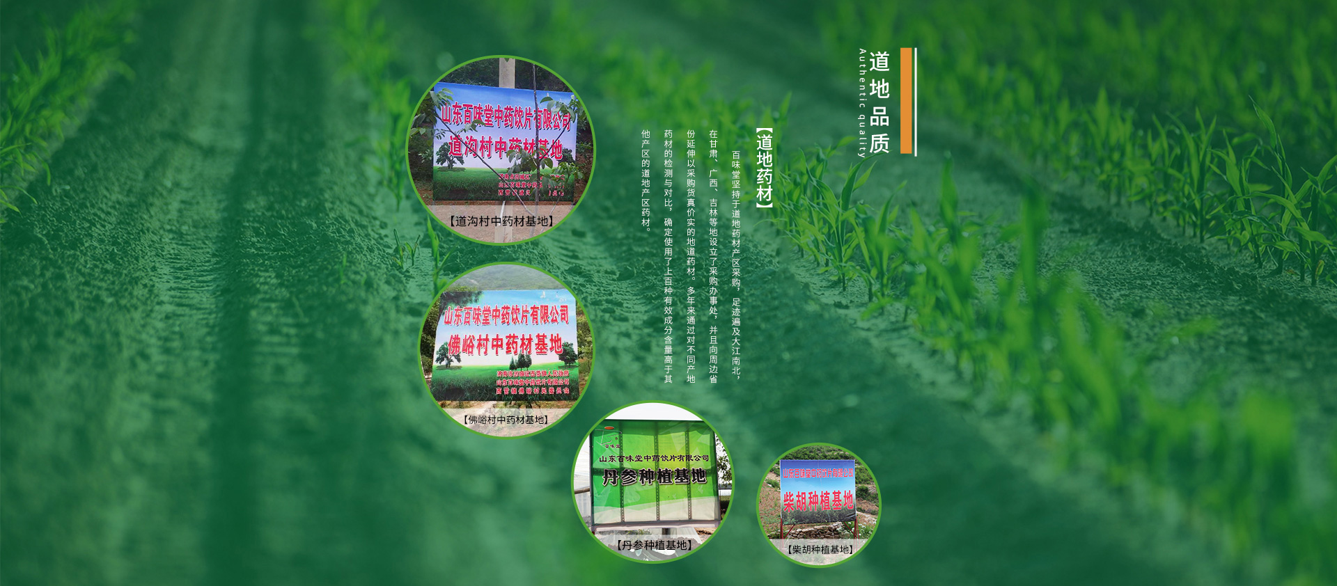 山東百味堂中藥飲片有限公司成立于2003年,是一家集中藥材種植、加工、中藥飲片生產(chǎn)、研發(fā)、銷售于一體的新型中藥生產(chǎn)企業(yè),是百年中藥老字號(hào)“同盛公”的傳承人。公司北臨千里黃河,南望秀美華山,風(fēng)景優(yōu)美、水土宜人。公司廠區(qū)建筑面積兩萬(wàn)平米,擁有一般飲片、小包裝飲片、直接口服飲片、發(fā)酵、發(fā)芽、毒性中藥飲片和藥食同源生產(chǎn)七條生產(chǎn)線。公司致力于中藥材的精耕細(xì)作與中藥飲片的廣泛開(kāi)發(fā),已先后建立了多個(gè)藥材種植基地和藥材原產(chǎn)區(qū)供應(yīng)基地。